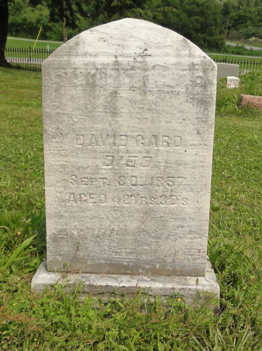 - [S1103] Find A Grave, online http://www.findagrave.com/cgi-bin/fg.cgi, Find A Grave memorial #8734948. Photo of grave marker. "DAVID GARD DIED SEPT. 30 1857 AGED 42 Yrs. 3 D's."